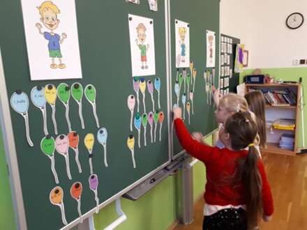 Pomůcku využijete k zábavnému procvičování správného psaní i/y ve slovech se slabikami DI, TI, NI, DY, TY, NY. Jedna sada je určena k individuální práci, pro kooperativní vyučování ve skupinách o 4 lidech, pro hromadné procvičování celé třídy najednou. Žáci mají za úkol přiřadit balónky k postavičce dívky nebo chlapce, jejichž oblečení označuje správně napsané i/y. Z druhé strany obrázků holčičky nebo kluka najdete správná řešení.